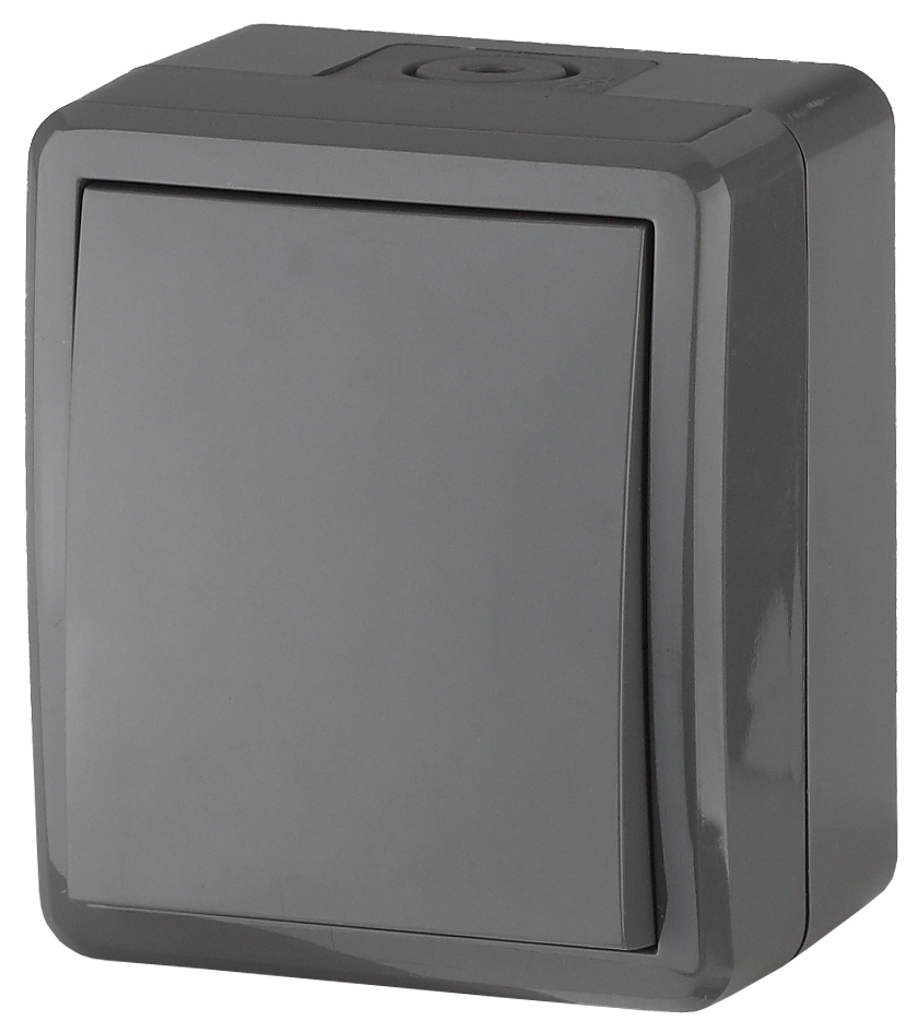 Выключатель влагозащищённый IP54 1-клавишный серии Эра Эксперт открытой уст. цвет серый 11-1401-03. Номинальные характеристики. Выключатель выполнен из качественного поликарбоната, оснащён уникальными винтовыми клеммами ЭКСПЕРТ для максимально качественного зажима кабеля в механизме.