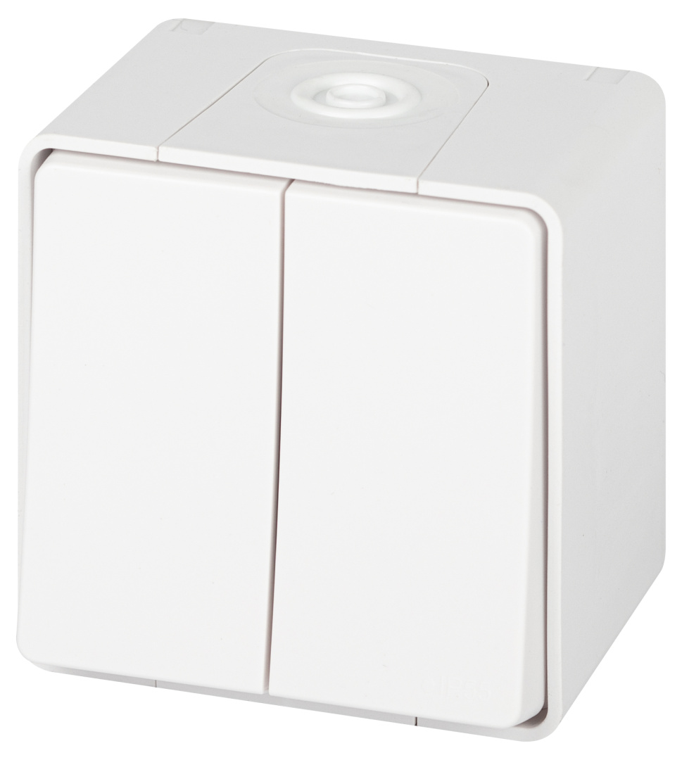 Выключатель влагозащищённый 2-клавишный серии Эра Эксперт накладной IIP55 цвет белый 11-1504-01 открытой установки. Номинальные характеристики 10А 250В. Выполнен из качественного поликарбоната, оснащён уникальными винтовыми клеммами ЭКСПЕРТ для максимально качественного зажима кабеля в механизме.