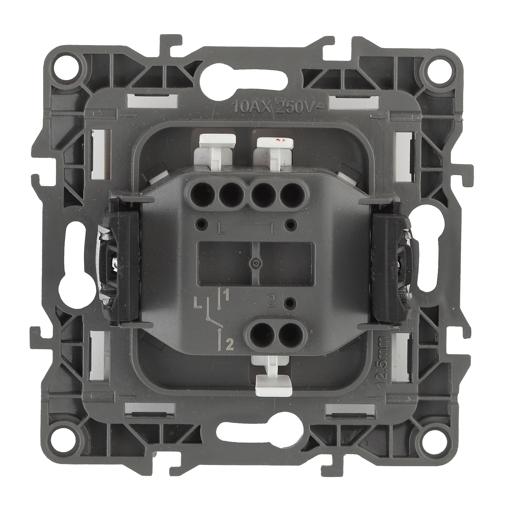Выключатель 1-клавишный серии Эра 12 скрытой установки механизм цвет алюминий 12-1101-03. Номинальные характеристики 10А 250В . Сделан из поликарбоната, оснащёно автоматическими клеммами для быстрй и надёжной фиксации жил кабеля в механиме. Парные клеммы обеспечивают соединение шлейфом. Монтаж в подрозетник производится и на лапки, и на винты. Рамки приобретаются отдельно. Рамки Эра 12: 1 пост 12-5001-хх, 2 поста 12-5002-хх, 3 поста 12-5003-хх, 4 поста 12-5004-хх, 5 постов 12-5005-хх. Рамки Эра 12 Сатин: 1 пост 12-5101-хх, 2 поста 12-5102-хх, 3 поста 12-5103-хх, 4 поста 12-5104-хх, 5 постов - 12-5105-хх (хх - код цвета: 01-белый, 02-слоновая кость, 03-алюминий, 04-шампань, 05-антрацит, 06-чёрный, 07-ольха(белёный дуб-сатин), 08-вишня, 09-дуб, 10-венге, 11-сосна, 21-жёлтый, 22-оранжевый, 23-красный, 24-охра, 25-бордо, 26-лайм, 27-зелёный, 28-голубой, 29-синий).
