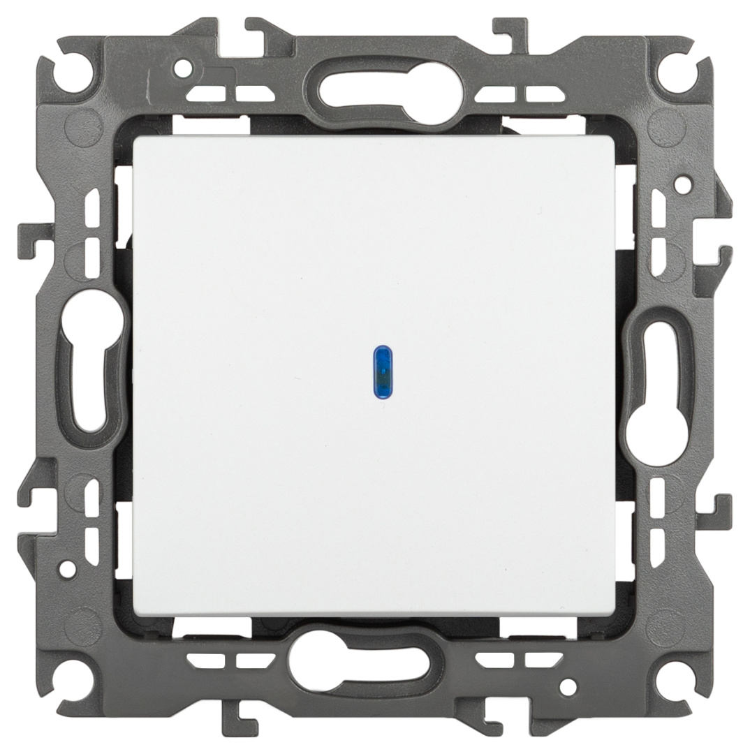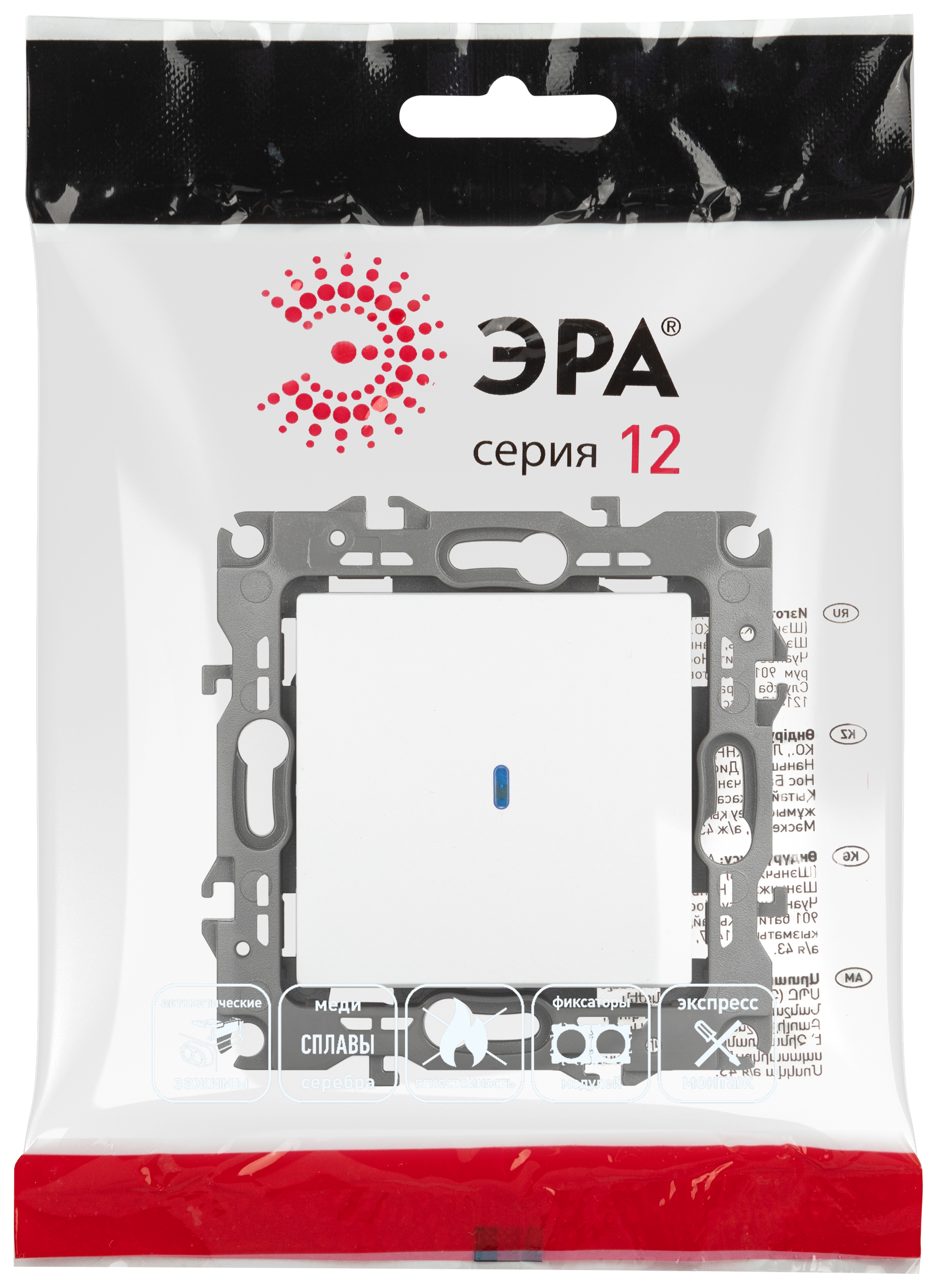Выключатель одноклавишный с подсветкой серии Эра 12 скрытой установки механизм цвет белый матовый 12-1102-01М. Номинальные характеристики 10А 250В . Сделан из поликарбоната, оснащён автоматическими клеммами для быстрой и надёжной фиксации жил кабеля в механизме. Парные клеммы обеспечивают соединение шлейфом. Монтаж в подрозетник производится и на лапки, и на винты. Рамки приобретаются отдельно.