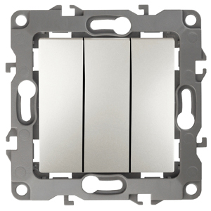 Выключатель 3-клавишный серии Эра 12 скрытой установки механизм цвет перламутр 12-1107-15. Номинальные характеристики 10А 250В . Сделан из поликарбоната, оснащён винтовыми уникальными клеммами ЭКСПЕРТ для надёжной фиксации жил кабеля в механиме. Парные клеммы обеспечивают соединение шлейфом. Монтаж в подрозетник производится и на лапки, и на винты. Рамки приобретаются отдельно.