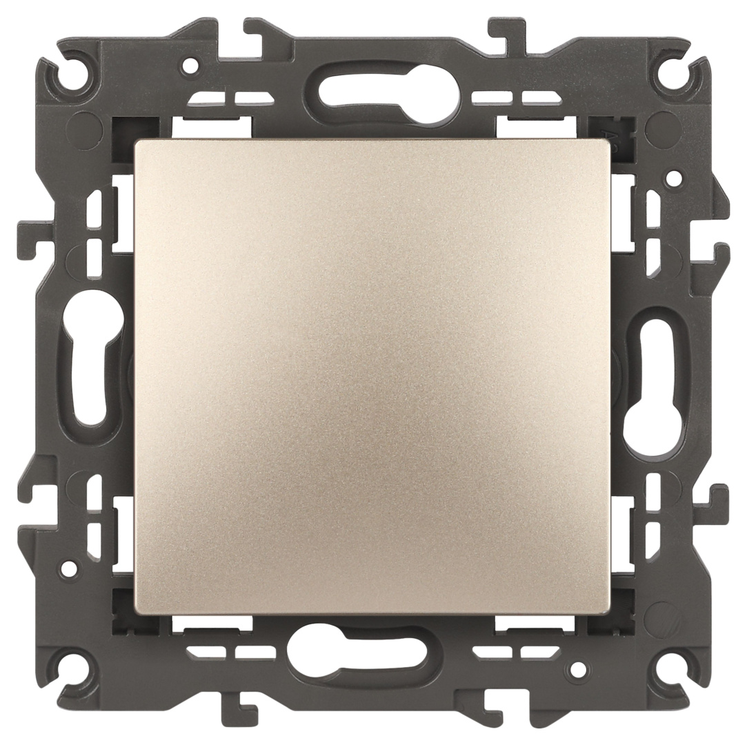 Выключатель 1-клавишный Эра Elegance шампань 14-1101-04. Оснащён автоматическими клеммами для надёжной фиксации жил кабеля в механизме. Рамки приобретаются отдельно.