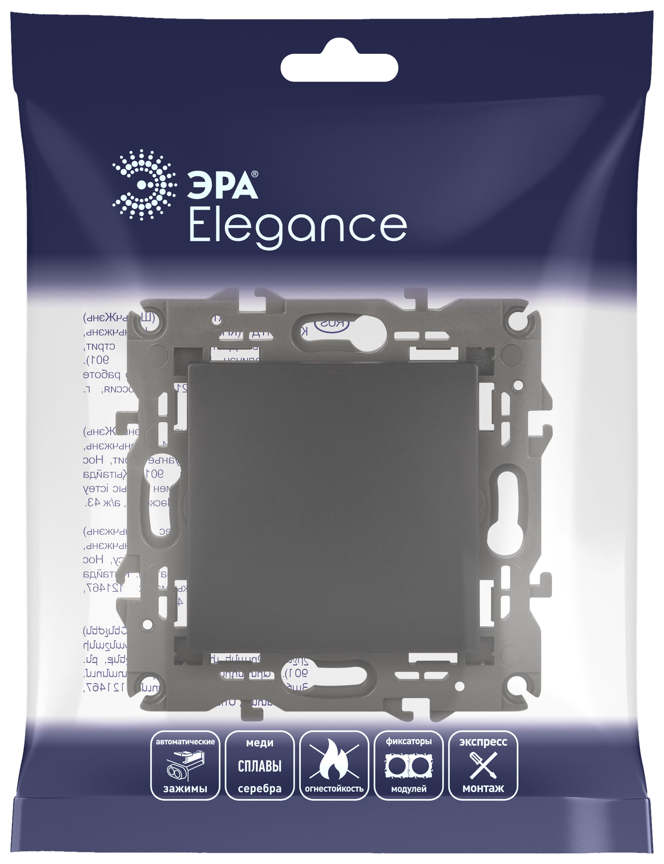 Выключатель 1-клавишный Эра Elegance антрацит 14-1101-05. Оснащён автоматическими клеммами для надёжной фиксации жил кабеля в механизме. Рамки приобретаются отдельно.