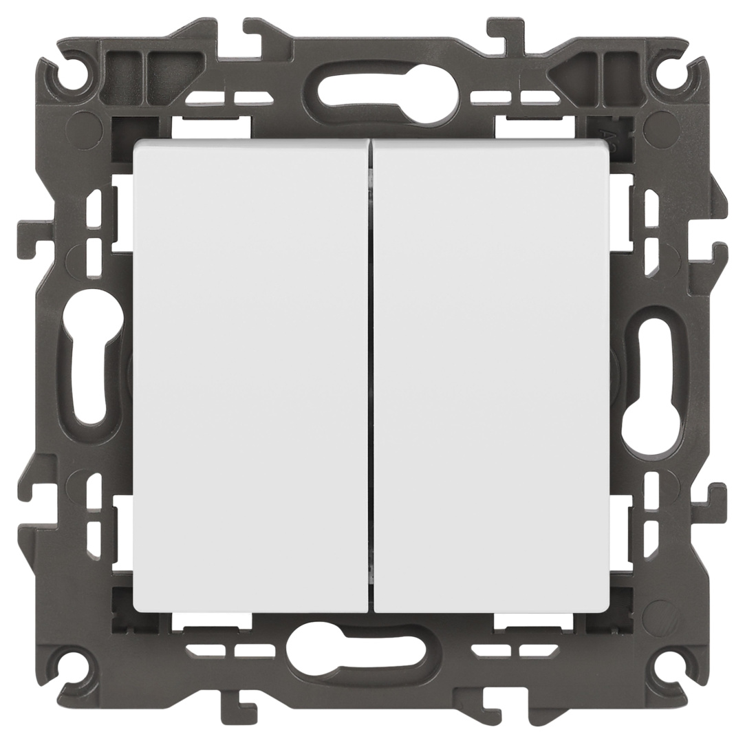 Выключатель 2-клавишный серии Эра Elegance цвет белый матовый 14-1104-01М. Характеристики 10А 250В. Оснащён автоматическими клеммами для надёжной фиксации жил кабеля в механизме. Рамки приобретаются отдельно.