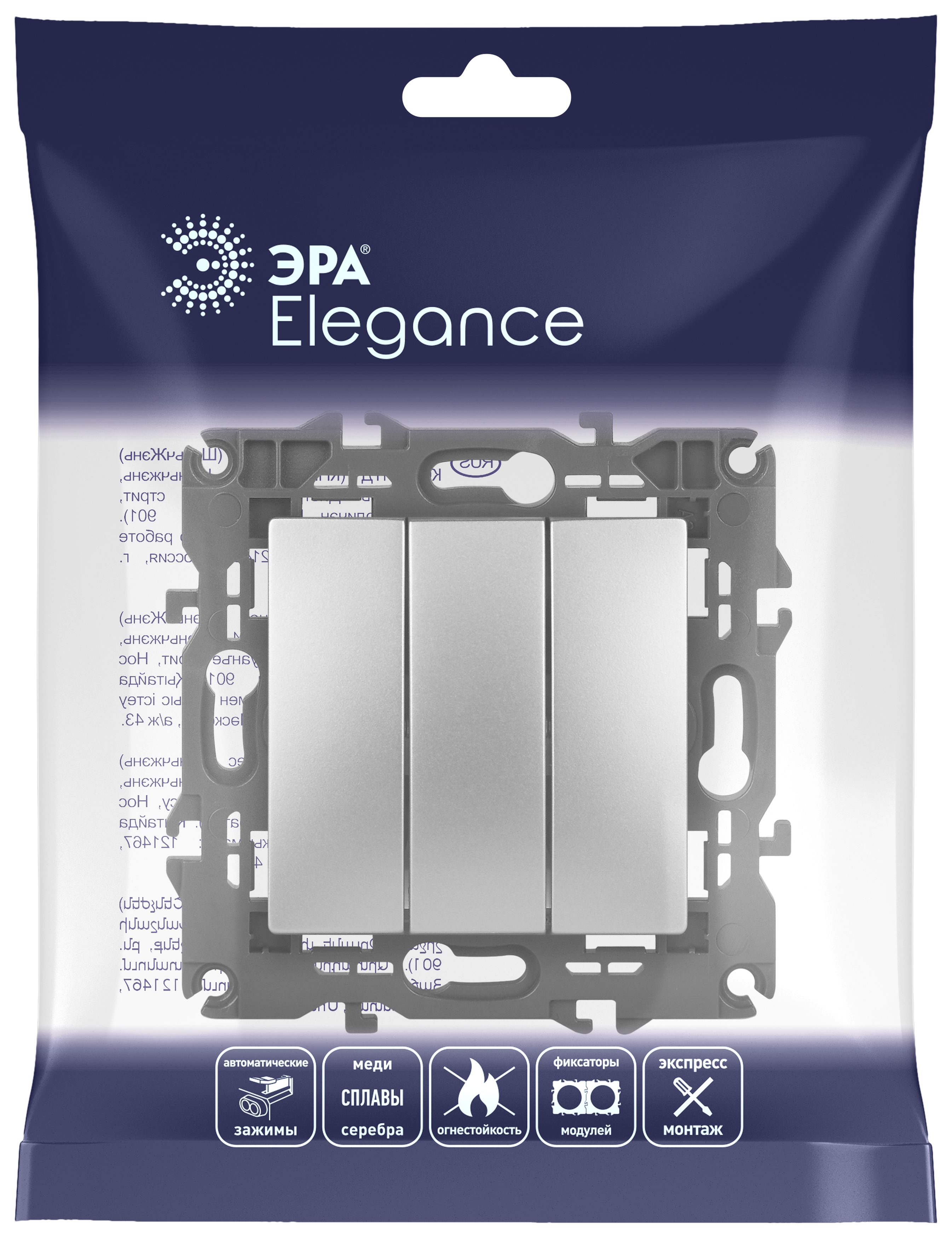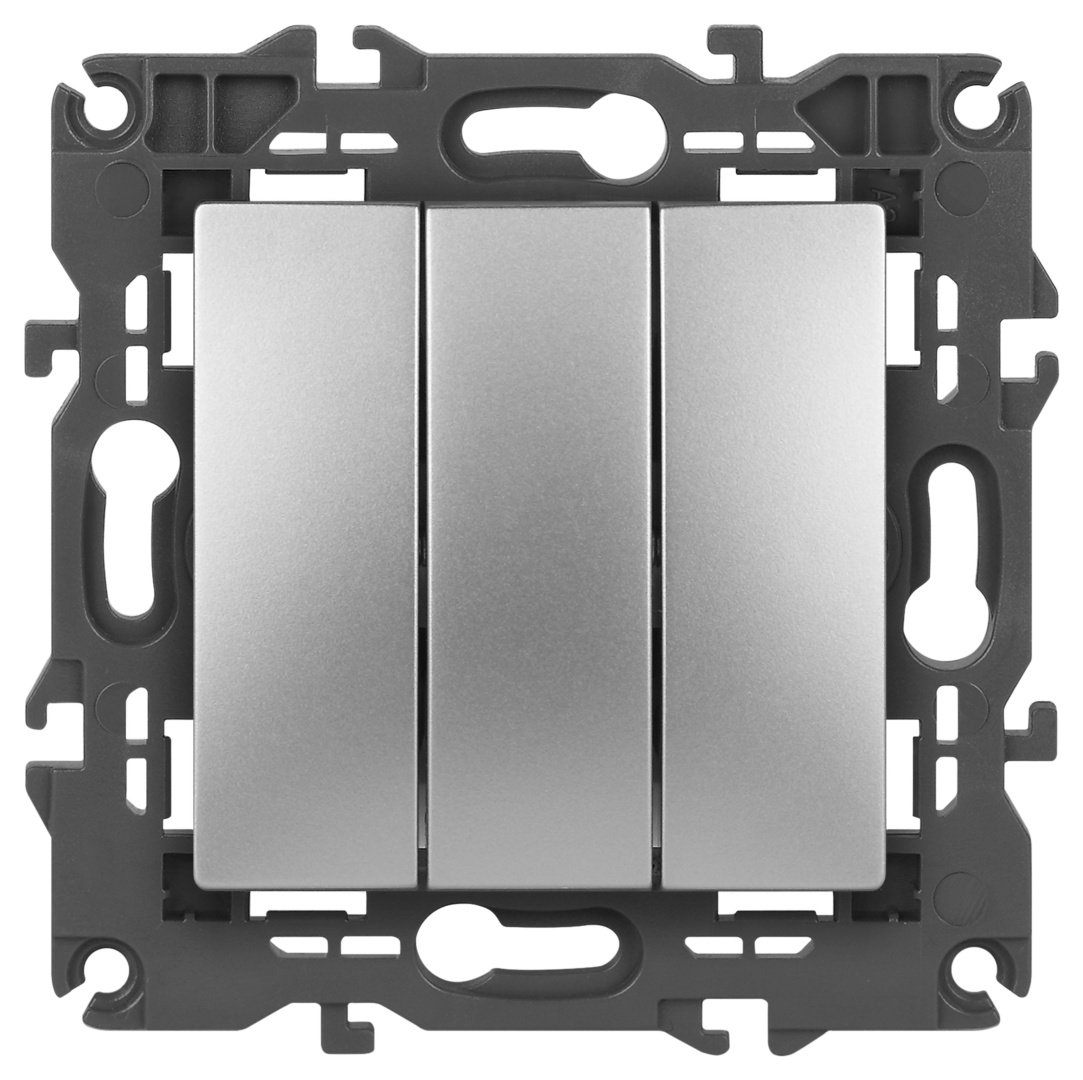 Выключатель 3-клавишный Эра Elegance алюминий 14-1107-03. Рамки приобретаются отдельно.