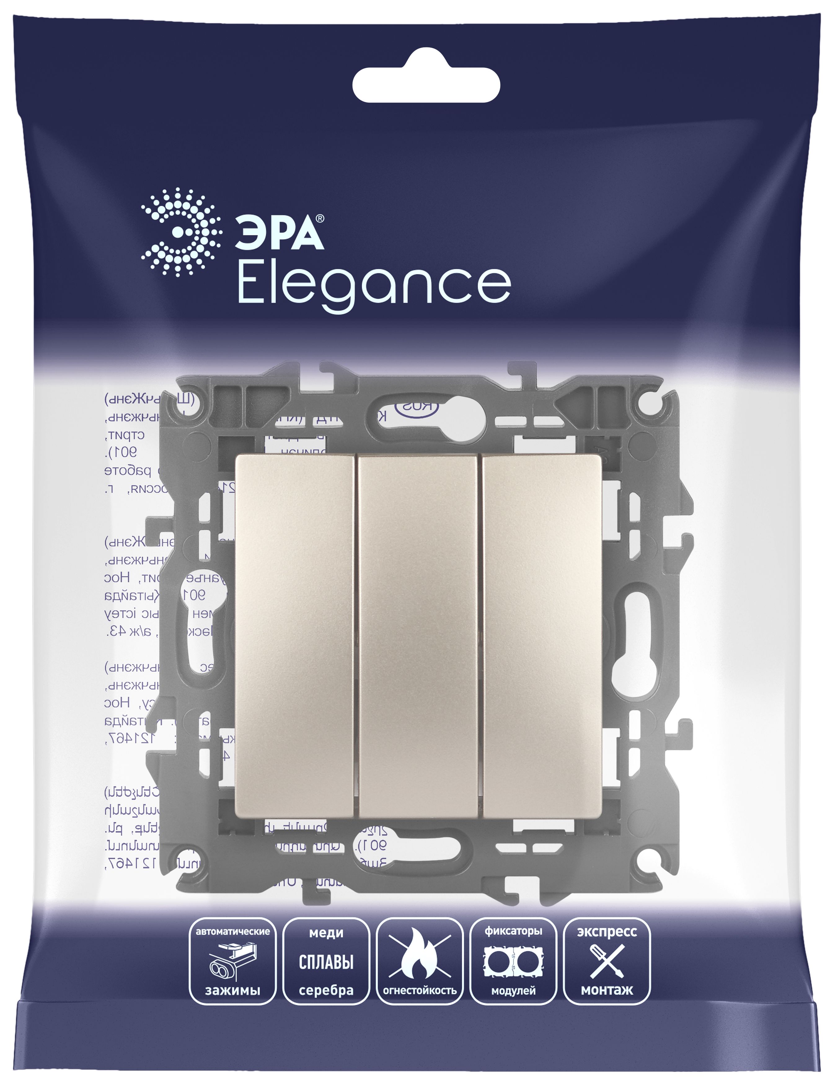 Выключатель 3-клавишный Эра Elegance шампань 14-1107-04. Рамки приобретаются отдельно.