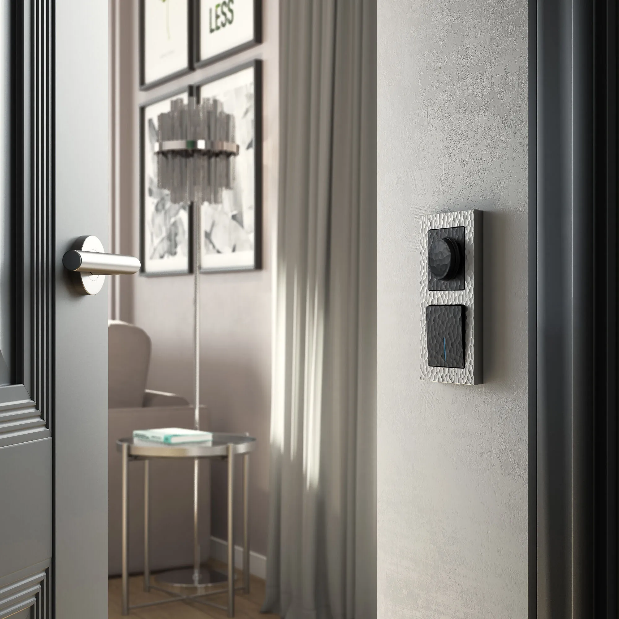Электроустановочное изделие монтируется в установочную коробку, оставляя видимым только внешнюю лицевую панель и накладную рамку. Механизм для скрытой установки оснащен суппортом из нержавеющей стали, позволяющий крепко зафиксировать изделие в подрозетнике. Надежные контакты из фосфористой бронзы и серебра выдерживают большую нагрузку и обладают большим эксплуатационным ресурсом 40 000 циклов.