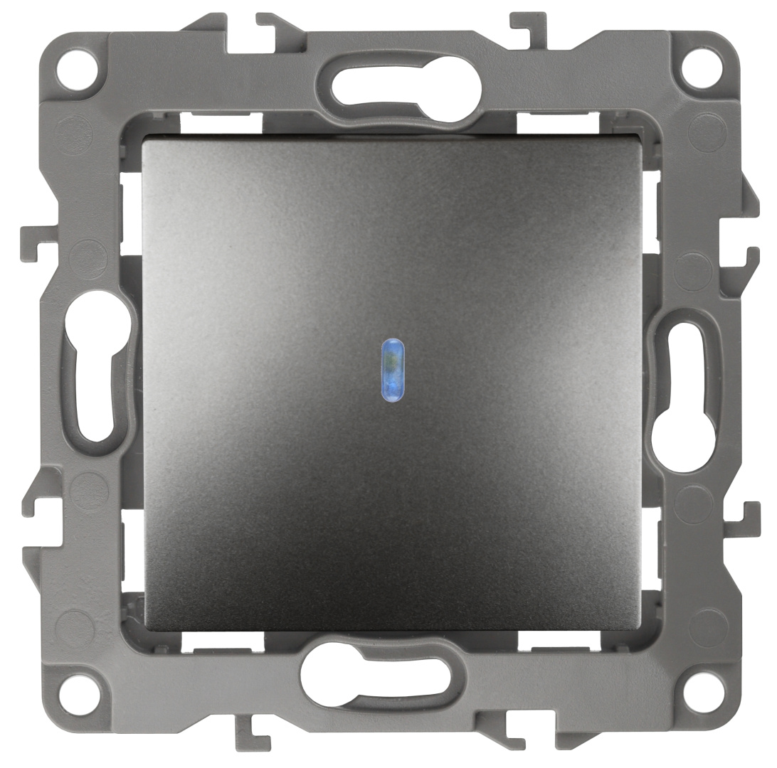 Выключатель 1-клавишный с подсветкой серии Эра 12 скрыт.установки механизм цвет графит 12-1102-12. Номинальные характеристики 10А 250В . Сделан из поликарбоната, оснащёно автоматическими клеммами для быстрй и надёжной фиксации жил кабеля в механиме. Парные клеммы обеспечивают соединение шлейфом. Монтаж в подрозетник производится и на лапки, и на винты. Рамки приобретаются отдельно. Рамки Эра 12: 1 пост 12-5001-хх, 2 поста 12-5002-хх, 3 поста 12-5003-хх, 4 поста 12-5004-хх, 5 постов 12-5005-хх. Рамки Эра 12 Сатин: 1 пост 12-5101-хх, 2 поста 12-5102-хх, 3 поста 12-5103-хх, 4 поста 12-5104-хх, 5 постов - 12-5105-хх (хх - код цвета: 01-белый, 02-слоновая кость, 03-алюминий, 04-шампань, 05-антрацит, 06-чёрный, 07-ольха(белёный дуб-сатин), 08-вишня, 09-дуб, 10-венге, 11-сосна, 21-жёлтый, 22-оранжевый, 23-красный, 24-охра, 25-бордо, 26-лайм, 27-зелёный, 28-голубой, 29-синий).