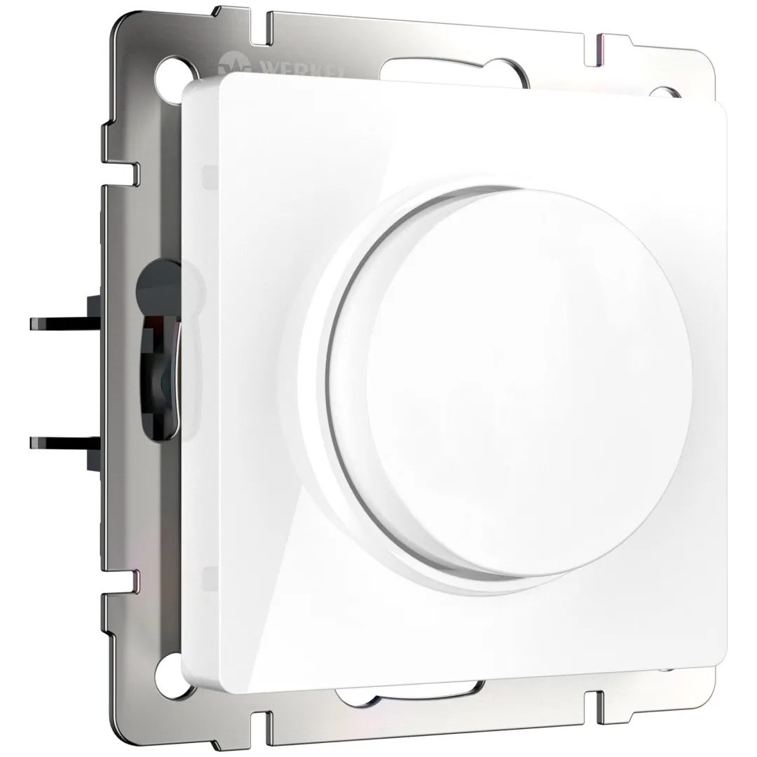 Диммер предназначен для изменения уровня яркости света. Поворотная кнопка регулирует интенсивность светового потока. Включение и выключение производится нажатием на кнопку. Диммер совместим со светодиодными диммируемыми лампами и лампами накаливания.