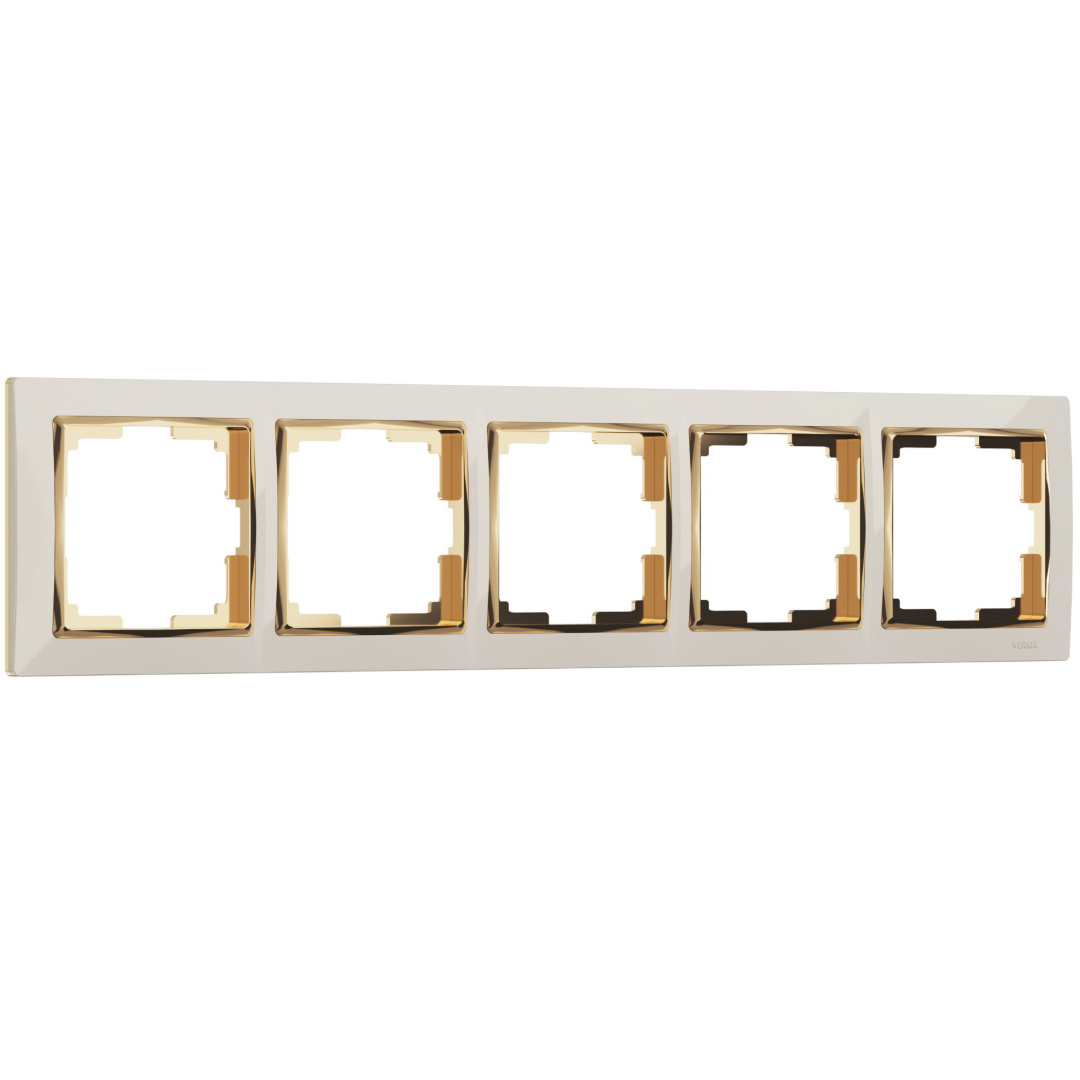 Рамка из поликарбоната на 5 постов Snabb слоновая кость/золото W0051932.