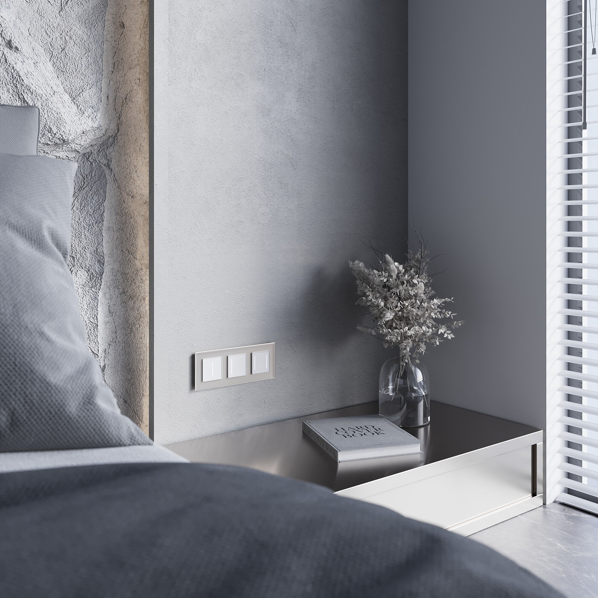 Рамка Senso soft-touch в дымчатом цвете выполнена из закаленного стекла. Идеально отшлифованные грани, подчеркнутые прямой фаской, создают необычайную игру света и придают дополнительный объем стеклу.