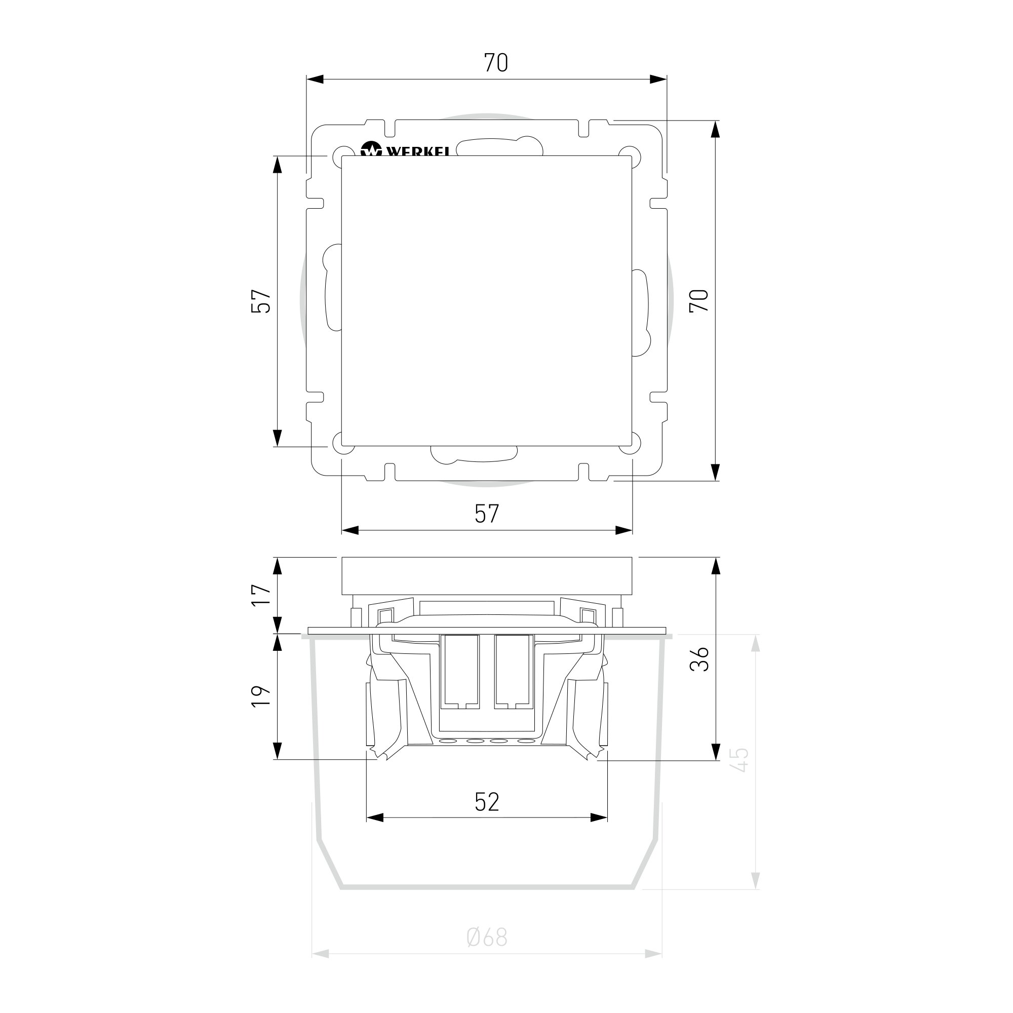 Электроустановочное изделие монтируется в установочную коробку, оставляя видимым только внешнюю лицевую панель и накладную рамку. Механизм для скрытой установки оснащен суппортом из нержавеющей стали, позволяющий крепко зафиксировать изделие в подрозетнике. Надежные контакты из фосфористой бронзы и серебра выдерживают большую нагрузку и обладают большим эксплуатационным ресурсом 40 000 циклов.