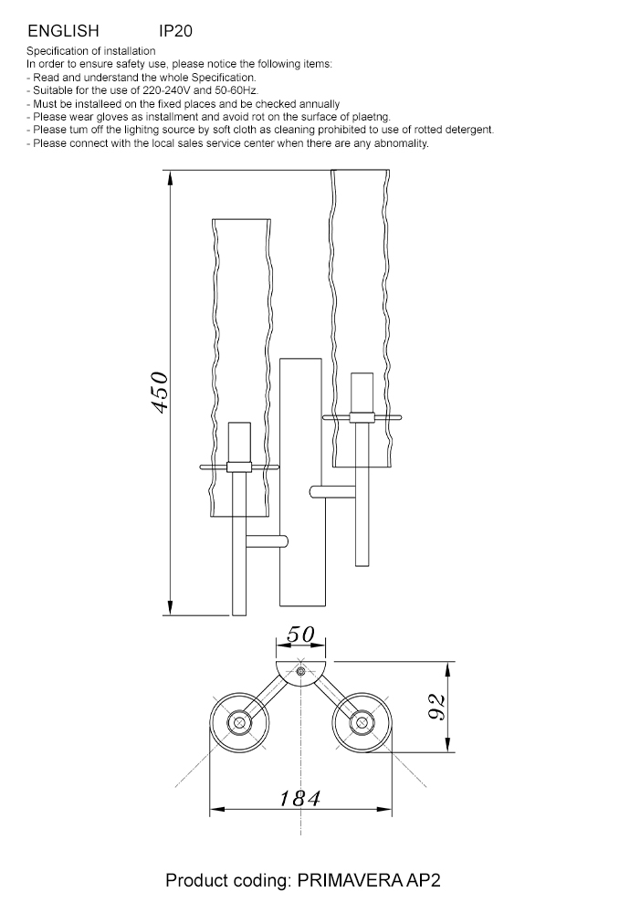 Бра Crystal Lux PRIMAVERA AP2 CHROME