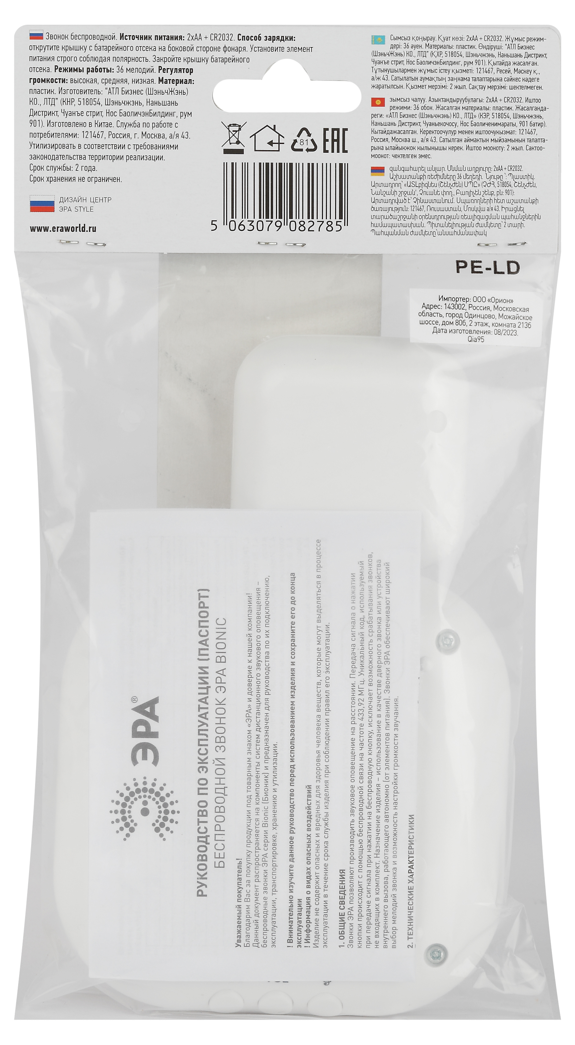 Популярная серия беспроводных звонков ЭРА BIONIC представлена в цветах: белый (арт. Б0017748), черный (арт. Б0054779), серебро (арт. Б0017749), дерево (арт. Б0018089), слоновая кость (арт. Б0018090), шампань (арт. Б0018091).